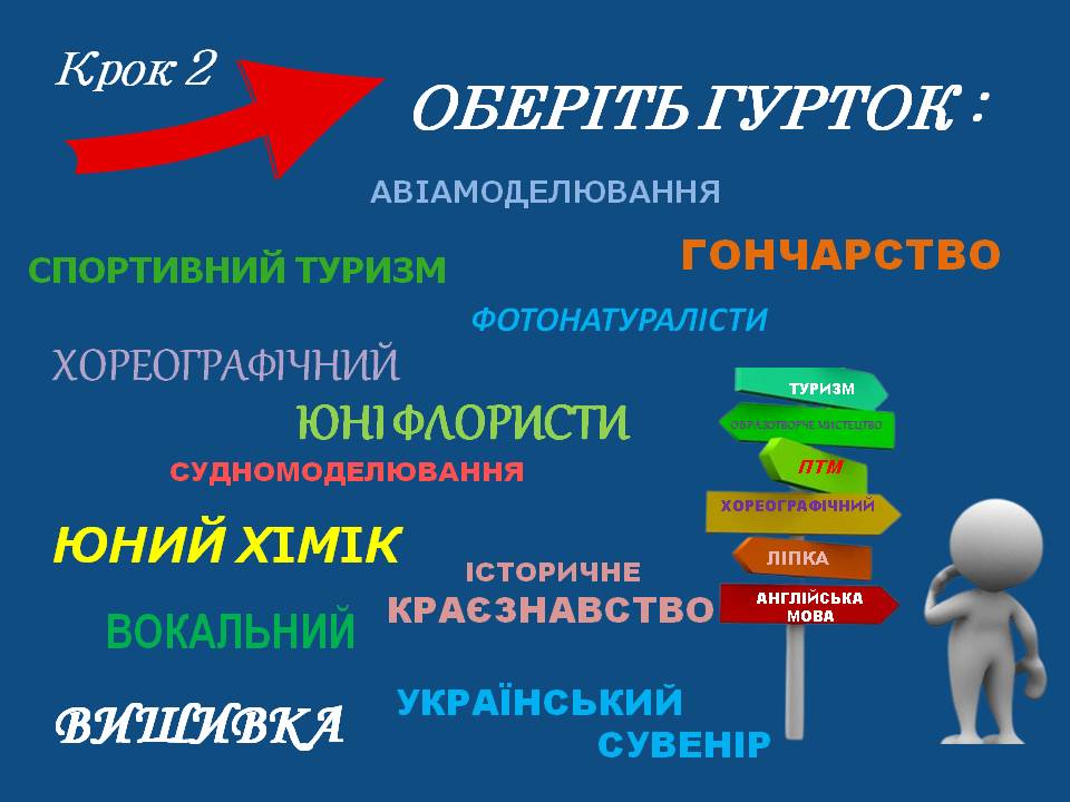 Мрієте весело та цікаво проводити вільний час, розвивати творчі здібності, навчитися власноруч виготовляти сувеніри, обереги, прикраси, малювати, ліпити, вишивати, танцювати, займатися туризмом та конструюванням моделей літаків, експериментувати, досліджувати та пізнавати довкілля тоді Вам до нас!